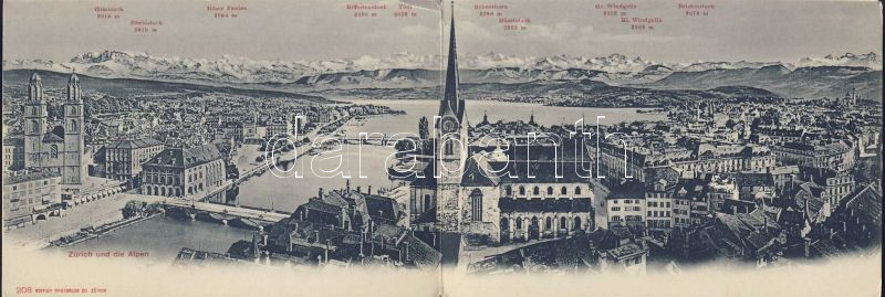 Beschreibung: Zürich with the Alps, the great minster and the Fraumünster abbey panoramacard (EK)