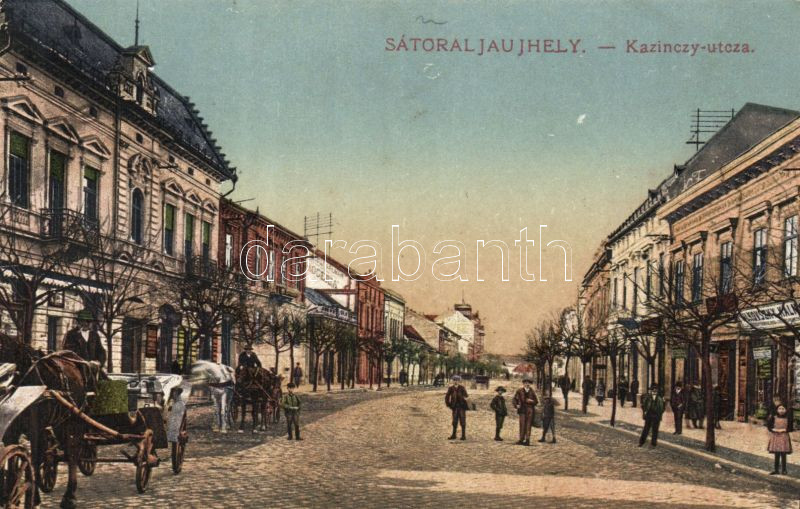 Beschreibung: Sátoraljaújhely Kazinczy utca Vilkovszky Kálmán üzletével