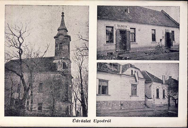 Beschreibung: Ugod Hangya kocsmával és szövetkezettel, gyógyszertárral és templommal