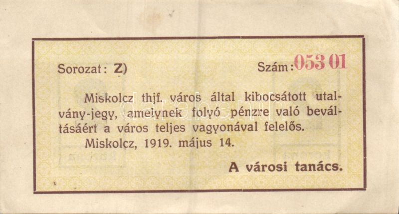 Beschreibung: Miskolc város 1919. 2K T:II+