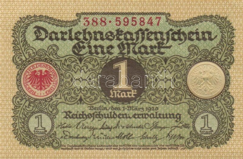 Német Birodalom / Weimari Köztársaság 1920. 1M (5x) egymás utáni sorsz... https://www.darabanth.com/de/120-Fernauktion/120.0/Numismatik/~30253/Nemet-Birodalom-Weimari-Koztarsasag-1920-1M-5x-egymas-utani-sorszamokkal-TI-I-~II319759