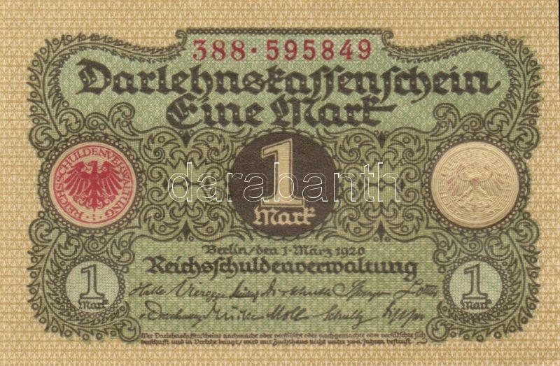 Beschreibung: Német Birodalom / Weimari Köztársaság 1920. 1M (5x) egymás utáni sorszámokkal T:I,I-