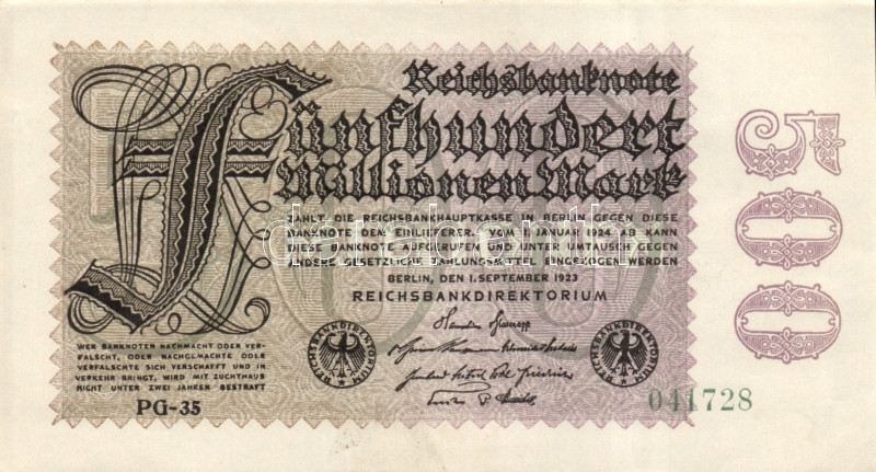 Német Birodalom / Weimari Köztársaság 1923. 500.000.000M variáns "... https://www.darabanth.com/de/120-Fernauktion/120.0/Numismatik/~30253/Nemet-Birodalom-Weimari-Koztarsasag-1923-500000000M-varians-Ringe-vizjellel-TI-~II316970