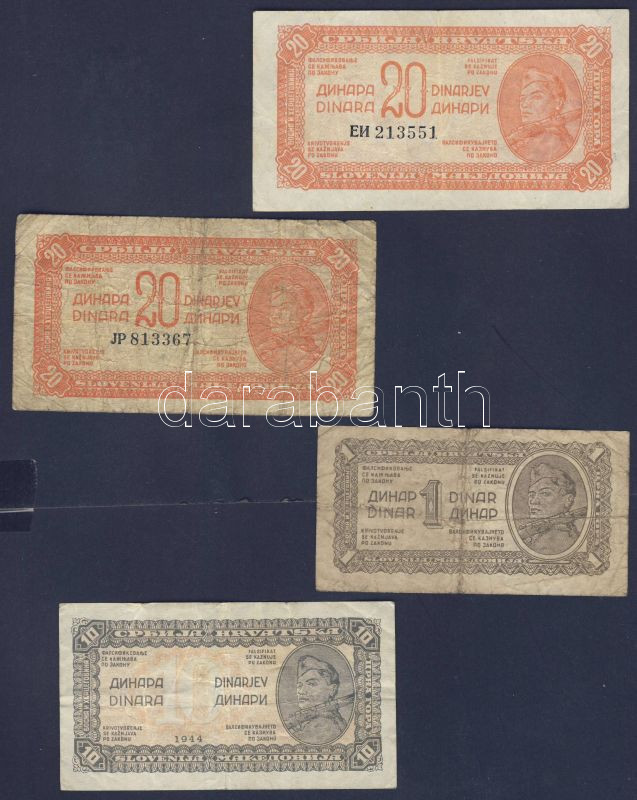 Beschreibung: Jugoszlávia 1944. 1D vastag papíron + 10D + 20D (2x) T:III,III-
