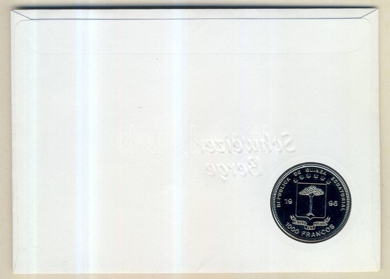 Beschreibung: Egyenlőtíői Guinea 1996. 1000Fr "Svájci hegyek - Les Diablerets" multicolor emlékpénz érmés borítékon alkalmi bélyegzős svájci bélyeggel, ismertetővel T:PP