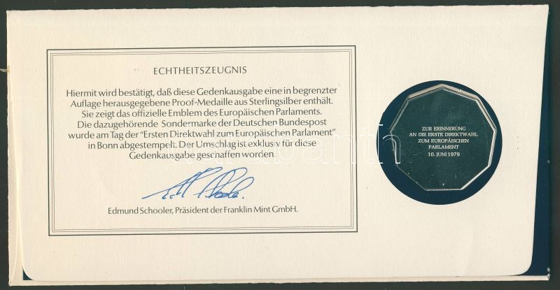 Beschreibung: NSZK 1979. "Európai Parlament" Ag emlékérem érmés, bélyeges borítékon, alkalmi bélyeggel, díszkiadásban! T:PP