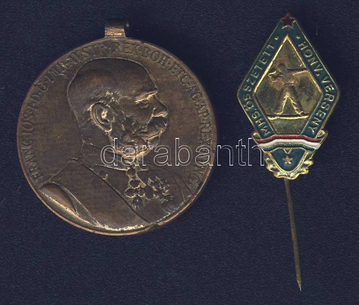 Beschreibung: 1898. "Signum Memoriae" Br katonai érdemérem szalag nélkül T:2/3 + DN "MHS - összetett honvédelmi verseny" multicolor kitűző T:2
