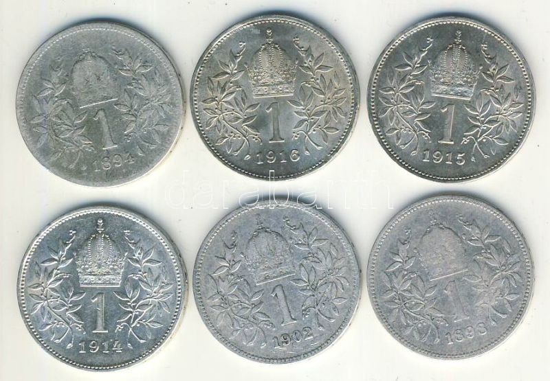 Ausztria 1894-1916. 1K Ag (6x) mind klf évszámmal T:2,3 https://www.darabanth.com/de/120-Fernauktion/120.0/Numismatik/~30266/Ausztria-1894-1916-1K-Ag-6x-mind-klf-evszammal-T2-3~II326350