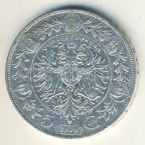 Ausztria 1909. 5K Ag T:3 apró ph. https://www.darabanth.com/de/120-Fernauktion/120.0/Numismatik/~30266/Ausztria-1909-5K-Ag-T3-apro-ph~II322974
