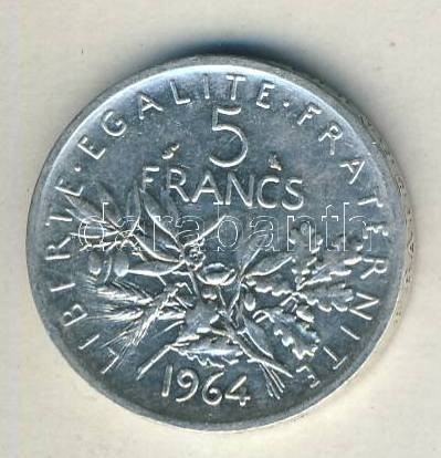 Beschreibung: Franciaország 1964. 5Fr Ag T:2/3 apró ph.