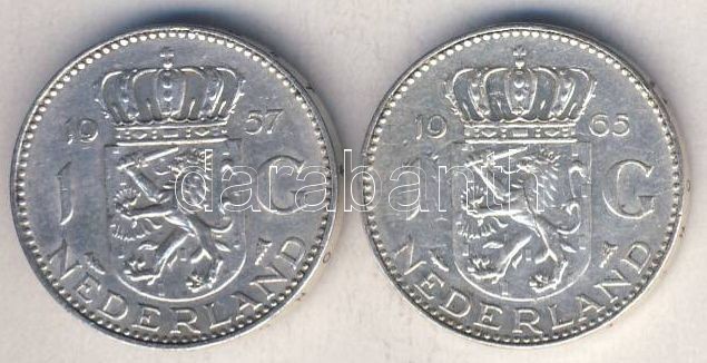 Hollandia 1957-65. 1G Ag (2x) klf évszámmal T:2,2/3 https://www.darabanth.com/de/120-Fernauktion/120.0/Numismatik/~30266/Hollandia-1957-65-1G-Ag-2x-klf-evszammal-T2-23~II320261
