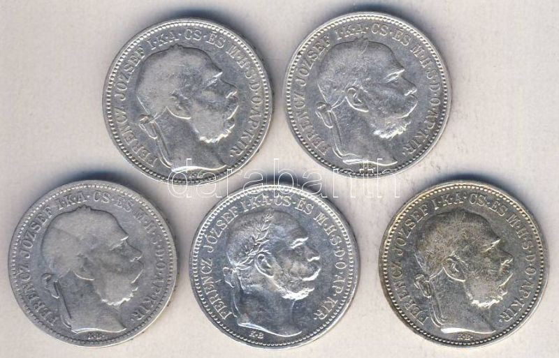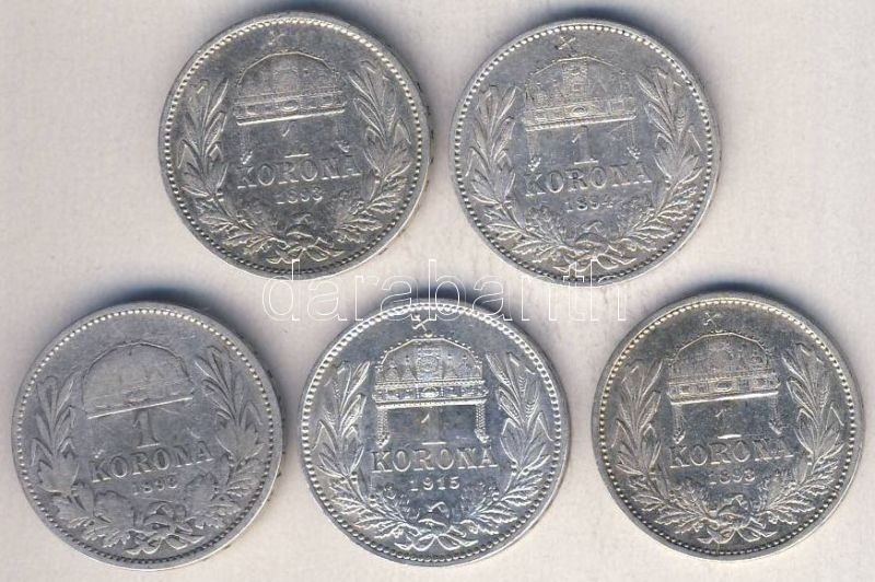 Beschreibung: 1893-1915. 1K Ag (5x) 3klf évszámmal T:2/3,3