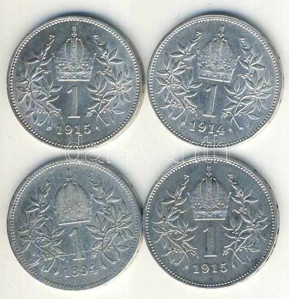 Ausztria 1894-1915. 1K Ag (4x) 3klf évszámmal T:2,3 https://www.darabanth.com/de/120-Fernauktion/120.0/Numismatik/~30271/Ausztria-1894-1915-1K-Ag-4x-3klf-evszammal-T2-3~II326456