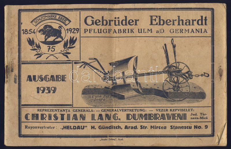 Beschreibung: 1939 Román rotációs kapa katalógus 44 oldal magyar-német-román / Romanian catalogue of goods, 44p.