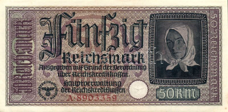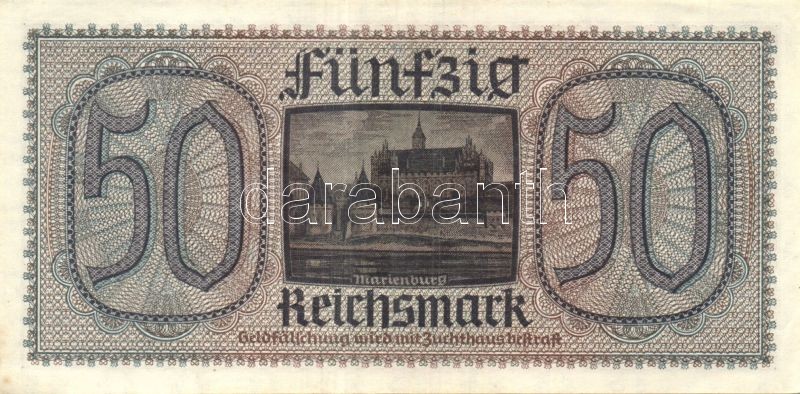 Beschreibung: Német Birodalom / II. világháborús megszállások 1939. 50M (3x) egymás utáni sorszámokkal T:I,I-,II+