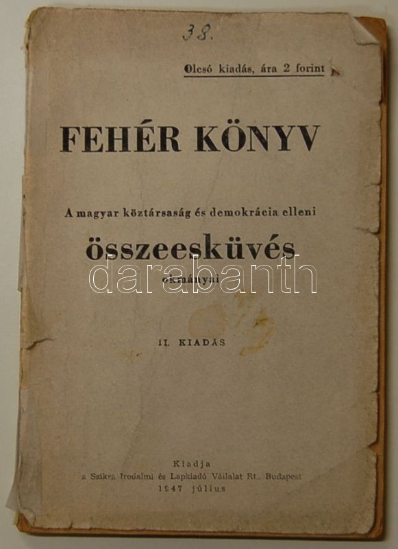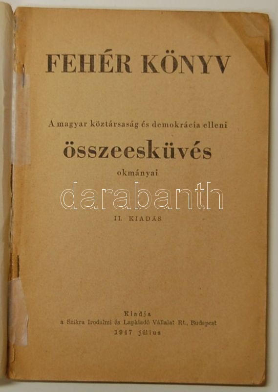 1947 Fehér Könyv - A magyar köztársaság és demokrácia elleni összeeskü... https://www.darabanth.com/de/126-Fernauktion/126.0/Andere-Sammelgebiete/~3000133/1947-Feher-Konyv--A-magyar-koztarsasag-es-demokracia-elleni-osszeeskuves-okmanyai-II-ki~II352360