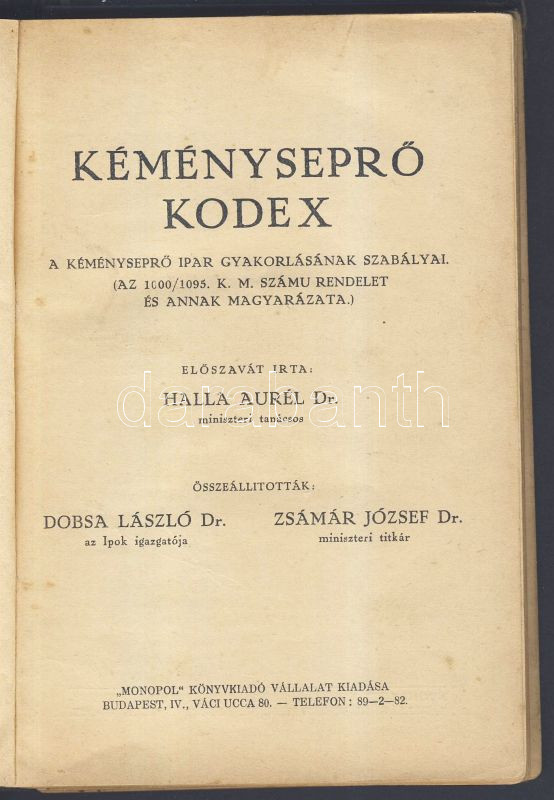 1930 Kéményseprő kódex, Monopol könyvkiadó, Bp. (kötés kilazult) https://www.darabanth.com/de/127-Fernauktion/127.0/Andere-Sammelgebiete/~500147/1930-Kemenysepro-kodex-Monopol-konyvkiado-Bp-kotes-kilazult~II358139