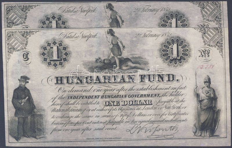 1852. 1$ (2x) "Kossuth bankó" "C" kézzel írott egymásutáni sorszámmal ... https://www.darabanth.com/de/127-Fernauktion/127.0/Numismatik/~500183/1852-1USD-2x-Kossuth-banko-C-kezzel-irott-egymasutani-sorszammal-TI~II354342