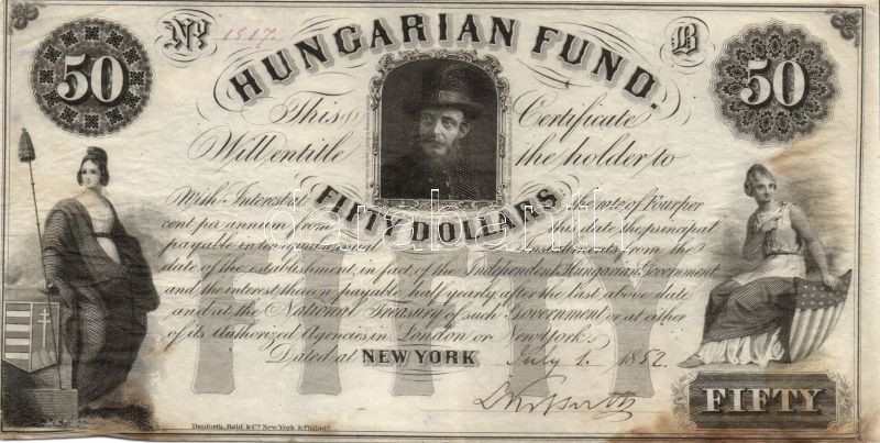 1852. Emigrációs "Kossuth bankó" New York 50$ Kossuth Lajos eredeti al... https://www.darabanth.com/de/127-Fernauktion/127.0/Numismatik/~500183/1852-Emigracios-Kossuth-banko-New-York-50USD-Kossuth-Lajos-eredeti-alairasaval-TII-barna-fo~II355707
