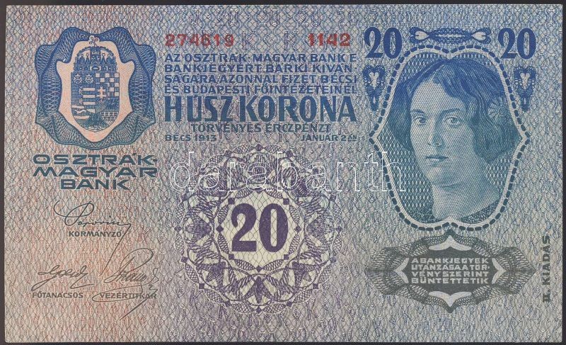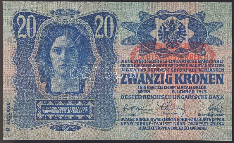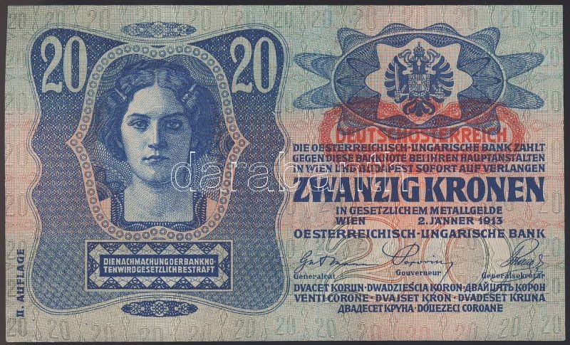1913. 20K (2x) "Deutschösterreich" felülbélyegzéssel, színeltéréssel T... https://www.darabanth.com/de/127-Fernauktion/127.0/Numismatik/~500183/1913-20K-2x-Deutschosterreich-felulbelyegzessel-szinelteressel-TI~II357783