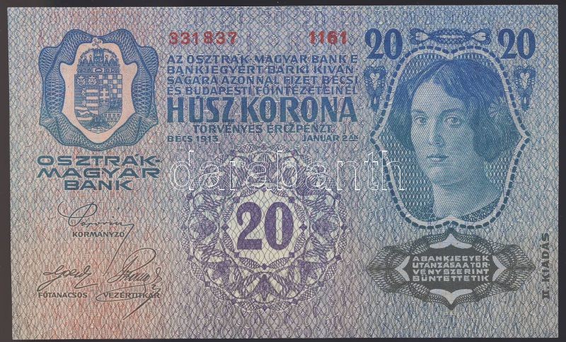 Beschreibung: 1913. 20K (2x) "Deutschösterreich" felülbélyegzéssel, színeltéréssel T:I