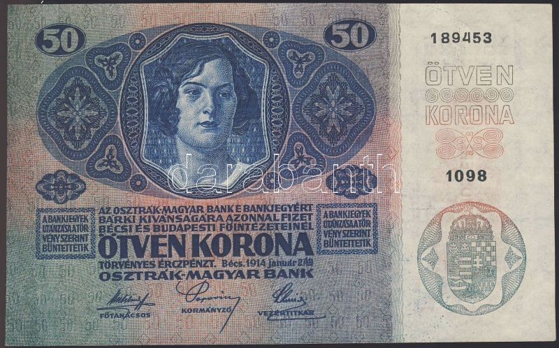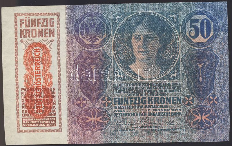1914. 50K "Deutschösterreich" felülbélyegzéssel T:I https://www.darabanth.com/de/127-Fernauktion/127.0/Numismatik/~500183/1914-50K-Deutschosterreich-felulbelyegzessel-TI~II357786