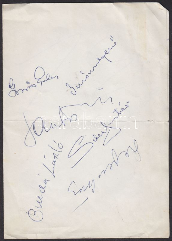 Az Aranycsapat tagjainak aláírásai papírlapon: Grosics, Buzánszky, Seb... https://www.darabanth.com/de/128-Fernauktion/128.0/Andere-Sammelgebiete/~300147/Az-Aranycsapat-tagjainak-alairasai-papirlapon-Grosics-Buzanszky-Sebes-es-Szepesi-Gyorgy~II360745