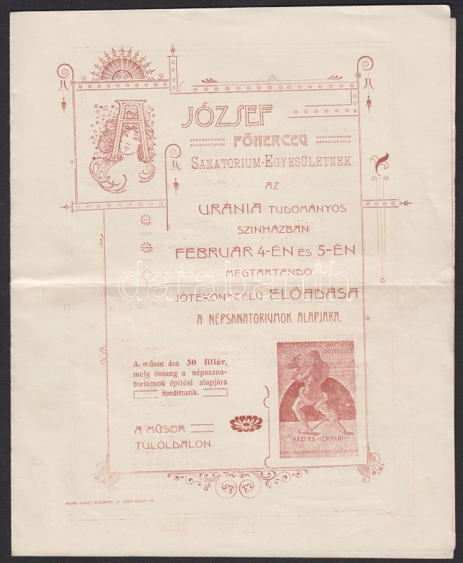 cca 1900 cca 1890 József főherceg Sanatorium szecessziós meghívó műsor... https://www.darabanth.com/de/128-Fernauktion/128.0/Andere-Sammelgebiete/~300158/cca-1900-cca-1890-Jozsef-foherceg-Sanatorium-szecesszios-meghivo-musorral-17x21-cm~II362389