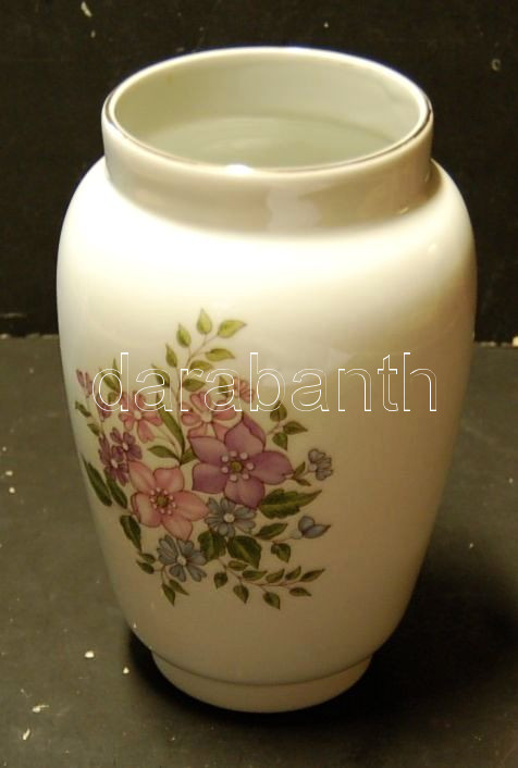 Beschreibung: Zsolnay jelzéssel ellátott virággal díszített porcelán váza aranyozott szegéllyel 19 cm magas