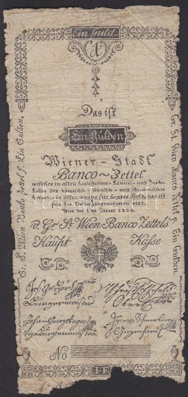 1800. 1G "Wiener-Stadt Banco-Zettel" T:IV. https://www.darabanth.com/de/128-Fernauktion/128.0/Numismatik/~300207/1800-1G-Wiener-Stadt-Banco-Zettel-TIV~II360526