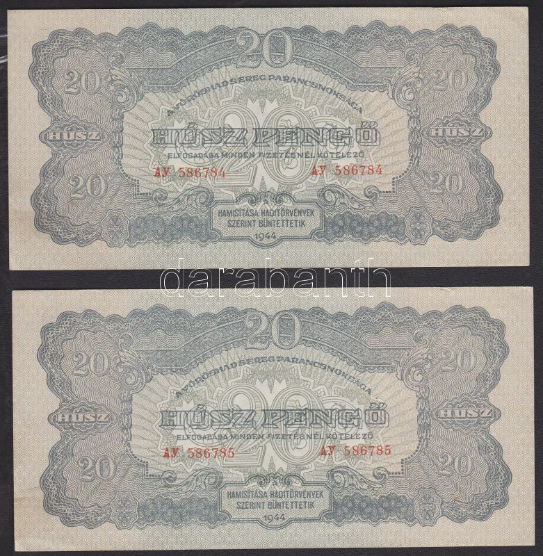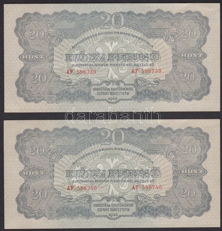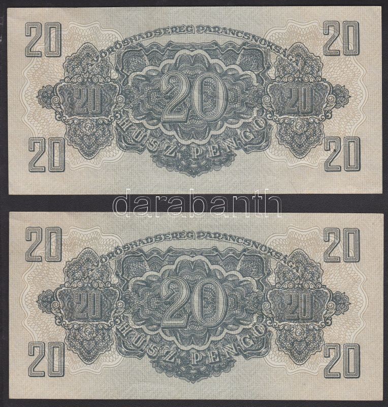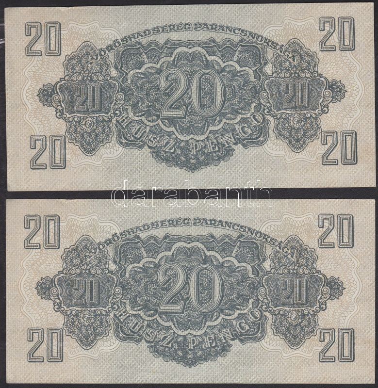 1944. 20P (4x) 2-2 egymásutáni sorszámmal T:I-/II+ https://www.darabanth.com/de/128-Fernauktion/128.0/Numismatik/~300207/1944-20P-4x-2-2-egymasutani-sorszammal-TI-IIplus~II360668