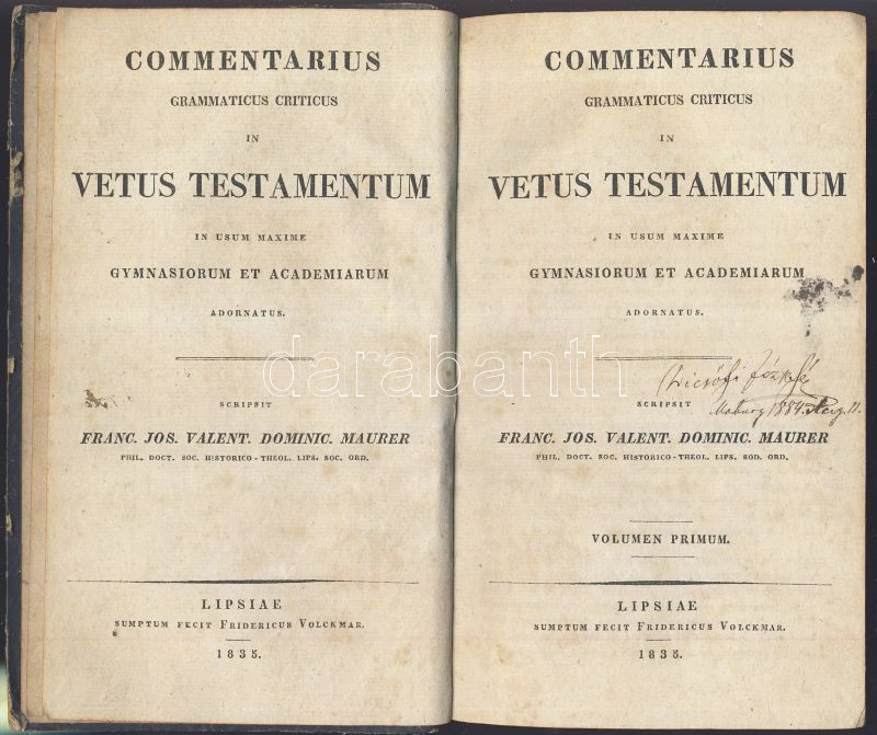 1835 Ótestamentum magyarázata, latin nyelven az eredeti héber szövegbő... https://www.darabanth.com/de/129-Fernauktion/129.0/Andere-Sammelgebiete/~400206/1835-Otestamentum-magyarazata-latin-nyelven-az-eredeti-heber-szovegbol-jo-allapotban~II358101