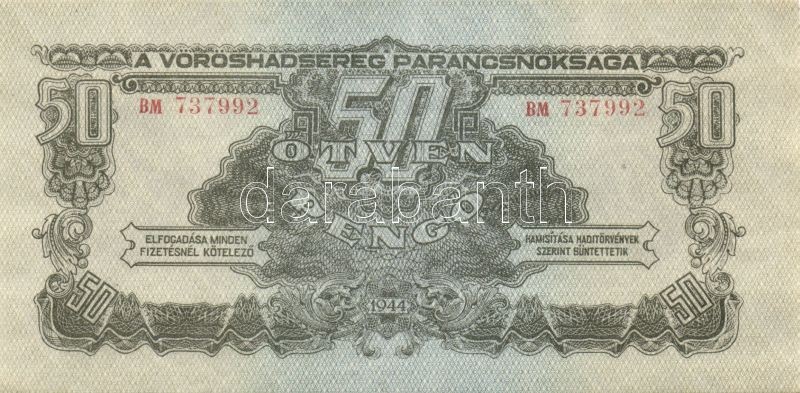 Beschreibung: 1944. 50P "V.H." (2x) egymásutáni sorszámmal T:I-