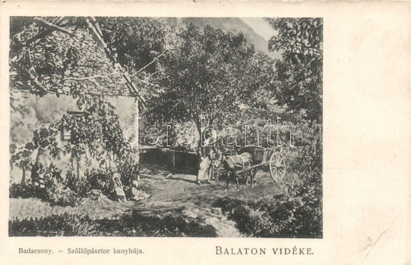 Badacsony szőlőpásztor kunyhó, Divald (EB) https://www.darabanth.com/de/13-Gross-Auktion/13.1/Ansichtskarten/Ungarn~3888/Badacsony-szolopasztor-kunyho-Divald-EB~II456170