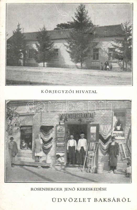 Baksa Rosenberger Jenő vegyeskereskedése https://www.darabanth.com/de/13-Gross-Auktion/13.1/Ansichtskarten/Ungarn~3888/Baksa-Rosenberger-Jeno-vegyeskereskedese~II463484