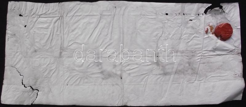1797 VI. Pius pápa levele melyben a pápa egy korábban leégett templom újjászenteléséréhez adja áldását. A levélen a közzétevő egri püspök gróf Esterházy Károly saját kezű aláírásával és sérült viaszpecsétjével. (2 helyen szakadás) / Papal letter from Pius VI. for a consecration of a church, announced and signed by the by the bishop of Eger Karoly Eszterhazy. (two tears) 40x18 cm