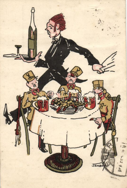 Military humour, restaurant s: Szabó https://www.darabanth.com/de/13-Gross-Auktion/13.1/Thematik-und-Kunstlerkarten/Militar~3982/Military-humour-restaurant-s-Szabo~II456707