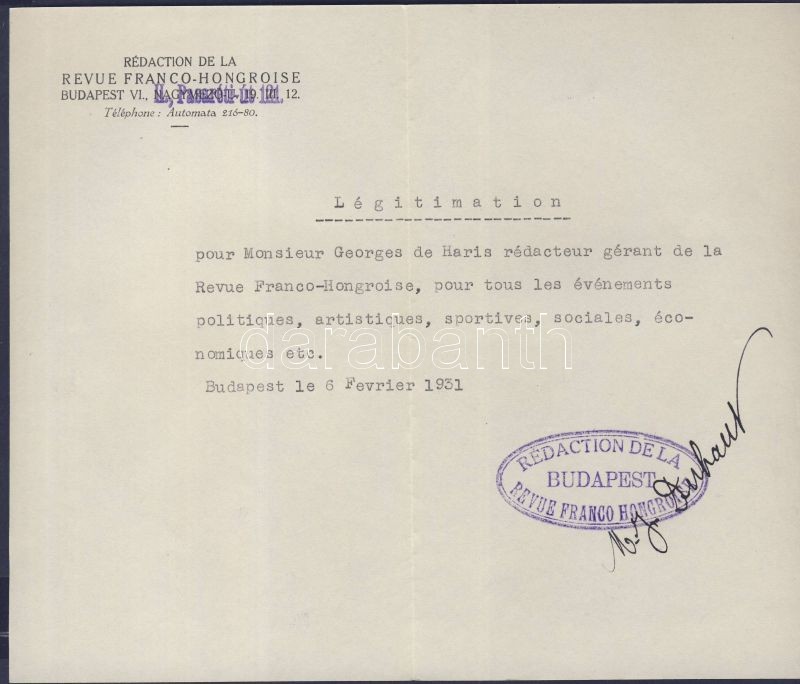1920-1945 Hris György sportújságíró részére szóló magyar, francia, osz... https://www.darabanth.com/de/130-Fernauktion/130.0/Andere-Sammelgebiete/~851/1920-1945-Hris-Gyorgy-sportujsagiro-reszere-szolo-magyar-francia-osztrak-igazolasok-tu~II322337