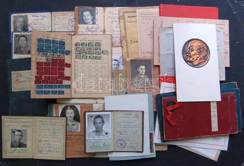 Nagy igazolvány tétel: 33 db különböző, jórészt borítós igazolvány és okirat, benne ritka darabokkal és parafilatéliai érdekességekkel: Szabólegények segélybélyegek, érdemes megnézni