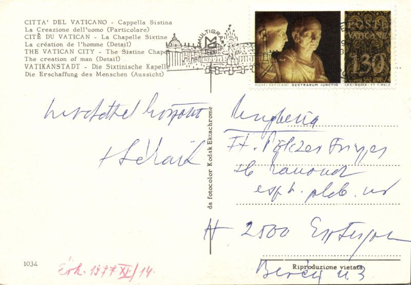 Beschreibung: Lákai László primás, esztergomi érsek által aláírt képeslap