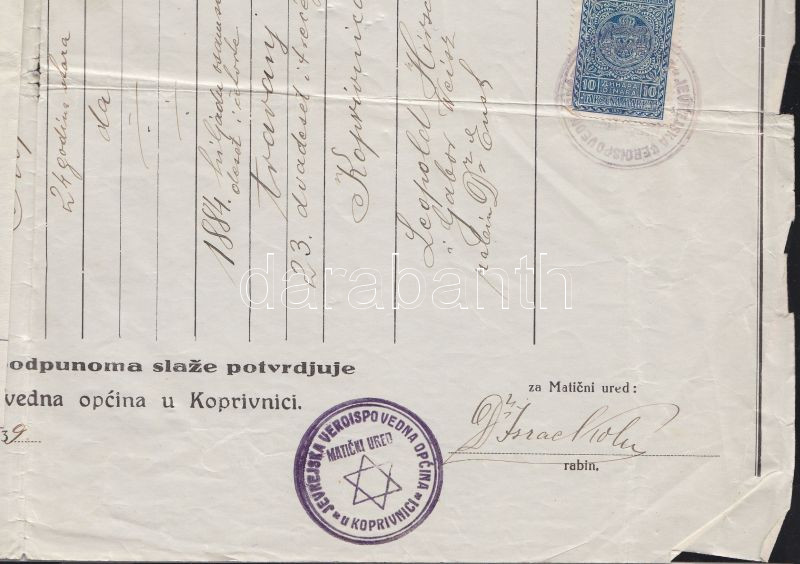1939 Isaac Kohn koprovnicai rabbi által aláírt születési anyakönyvi ki... https://www.darabanth.com/de/130-Fernauktion/130.0/Andere-Sammelgebiete/~855/1939-Isaac-Kohn-koprovnicai-rabbi-altal-alairt-szuletesi-anyakonyvi-kivonat-Birth-certificat~II370798