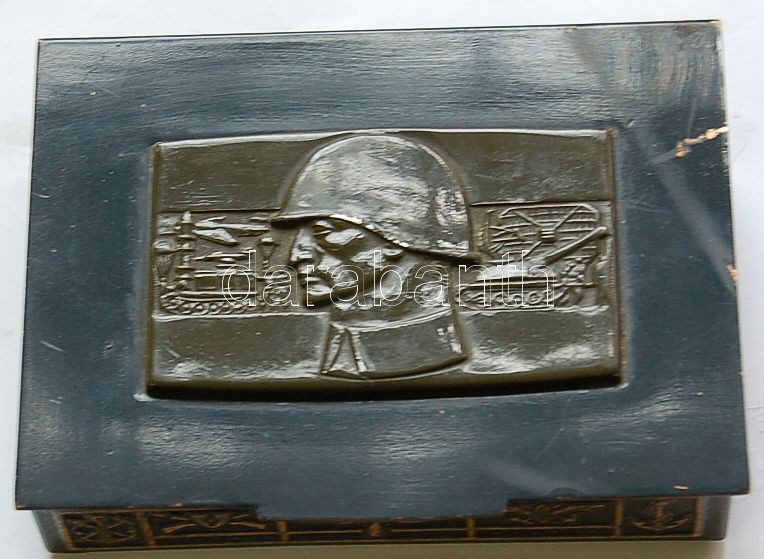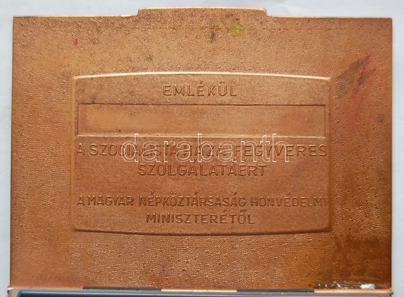 Beschreibung: DN "Emlékül a szocialista haza fegyveres szolgálatáért a népközt. honvédelmi miniszterétől" fém-doboz domborművel