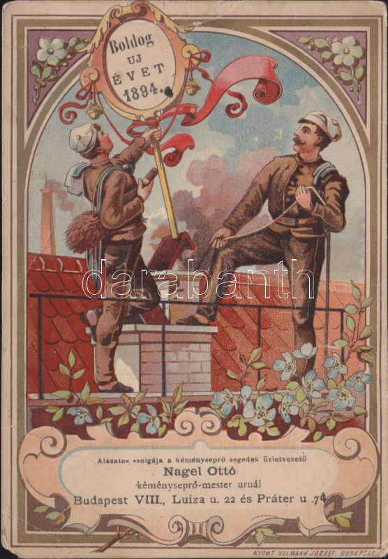 1894 Nagel Ottó kéményseprőmester ujévi litho üdvözlőkártya, Ulmann Jó... https://www.darabanth.com/de/130-Fernauktion/130.0/Andere-Sammelgebiete/~863/1894-Nagel-Otto-kemenysepromester-ujevi-litho-udvozlokartya-Ulmann-Jozsef-Bp-Litho-gr~II371021