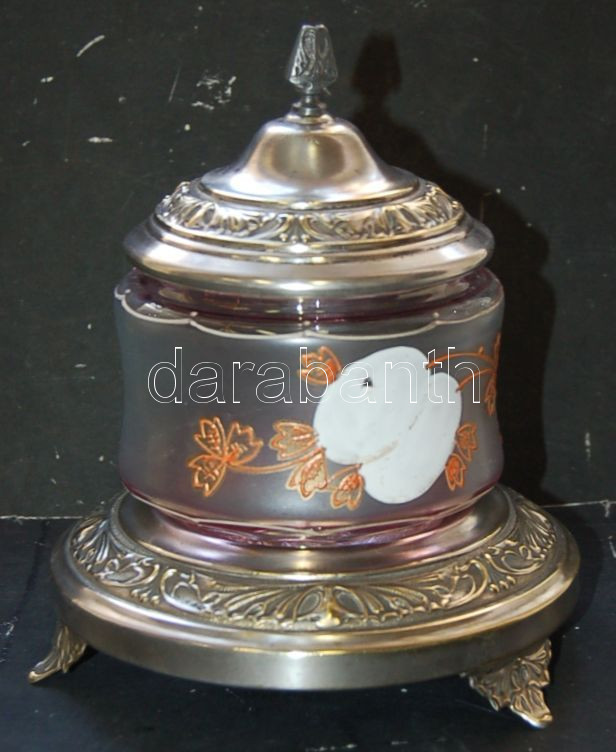 Szép század eleji ezüstözött réz festett üveg bonbonnier / Vintage bon... https://www.darabanth.com/de/130-Fernauktion/130.0/Andere-Sammelgebiete/~866/Szep-szazad-eleji-ezustozott-rez-festett-uveg-bonbonnier-Vintage-bonbonniere-15x20-cm~II370703