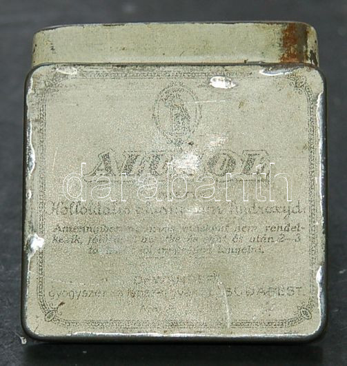 Beschreibung: cc. 1930-as évek Dr. Wander Gyógyszer és Tápszergyár Rt. "Alucol" tabletta fém doboza