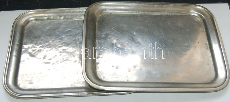 Beschreibung: cca 1900 2 db kávéházi alpakka pincér-tálca, egyikben Alhambra kávéház jelzéssel