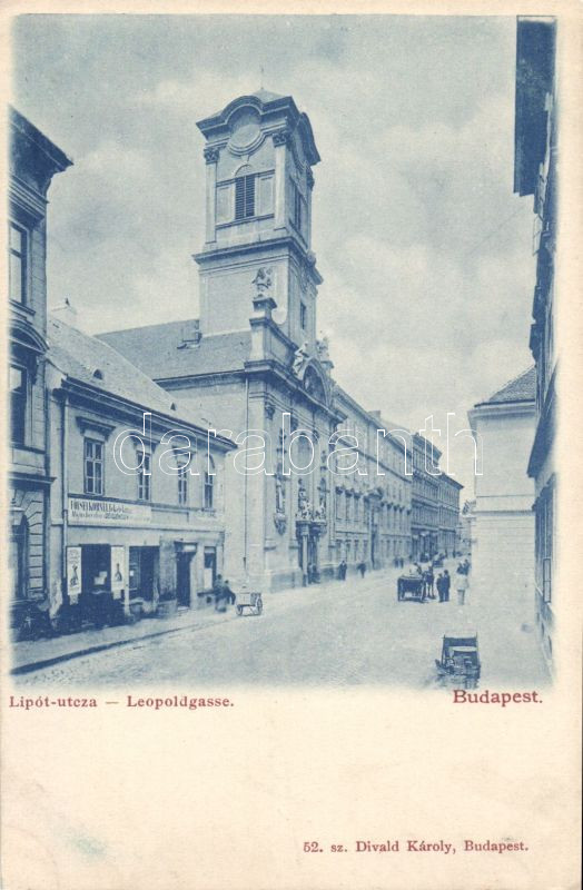 Beschreibung: Budapest V. Lipót utca Fölsei Kornél a Fekete Kutyához címzett üzletével