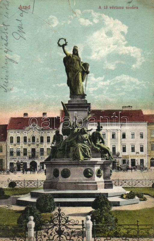 Arad Martyrs statue with the shops the Schwarz brothers, Weigl and Boc... https://www.darabanth.com/de/130-Fernauktion/130.0/Ansichtskarten/~506/Arad-Martyrs-statue-with-the-shops-the-Schwarz-brothers-Weigl-and-Bocsan-b~II370059