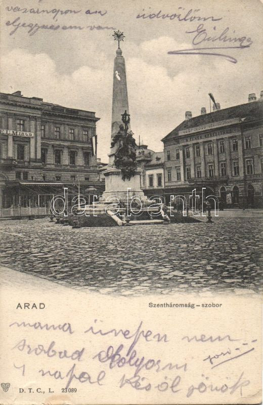 Arad Trinity statue with Hotel White Cross owned by Lajos Nagy (EK) https://www.darabanth.com/de/130-Fernauktion/130.0/Ansichtskarten/~506/Arad-Trinity-statue-with-Hotel-White-Cross-owned-by-Lajos-Nagy-EK~II367709