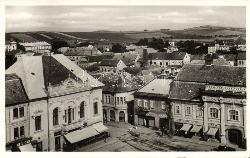 Beschreibung: Rimaszombat Hotel Tátra with the shops of Miskolczy, Póczos, Brünner, Heimlich and Mork photo So.Stpl